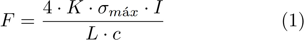 Donde las principales variables son el esfuerzo máximo de fluencia, la inercia, longitud de apoyos, distancia del eje neutro y el factor K, el cual está definido como el factor plástico de una sección transversal. Con esta fórmula se determina inicialmente la fuerza de doblado, pero no se consigue el resultado esperado. Realizando un experimento que consiste en la aplicación de pesos a un mecanismo de palanca, se determina el factor de doblado (fd = 1,32), definiendo así la fuerza total.