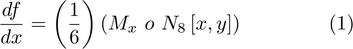 Al aplicar sobre una matriz de pixeles de orden 3x3 de los vecinos al punto de análisis.
