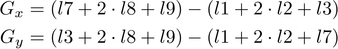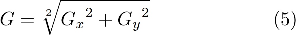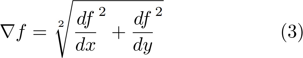 Aparte de los filtros que disminuyen el ruido en las imágenes. Existen los filtros que detectan los bordes de una imagen. Un borde es una discontinuidad, de tal forma que la detección de los mismos se basa en obtener la derivada de la función de la imagen [16]. Se aplican las siguientes ecuaciones para determinar el gradiente de la imagen [17]: