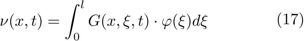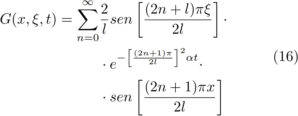La función (16) es la función de Green del problema. Si integramos, queda: