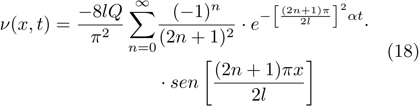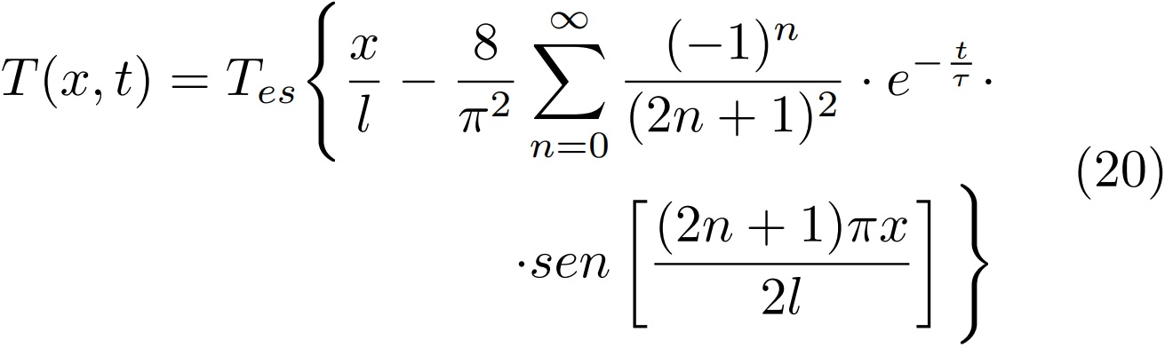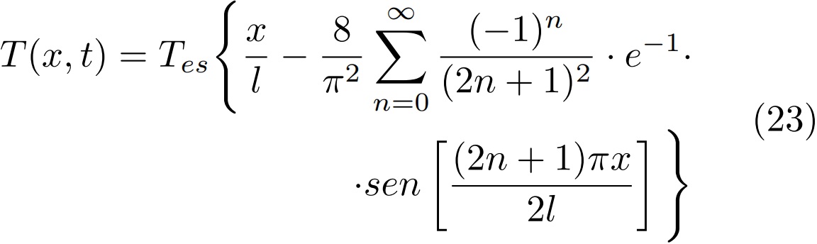 La expresión (20) representa el incremento de temperatura con relación a la temperatura inicial mientras se genera calor en la superficie de la muestra.