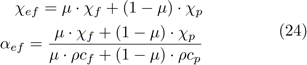 Así, para la conductividad y difusividad térmicas efectivas, se tiene las expresiones siguientes [14], [18]: