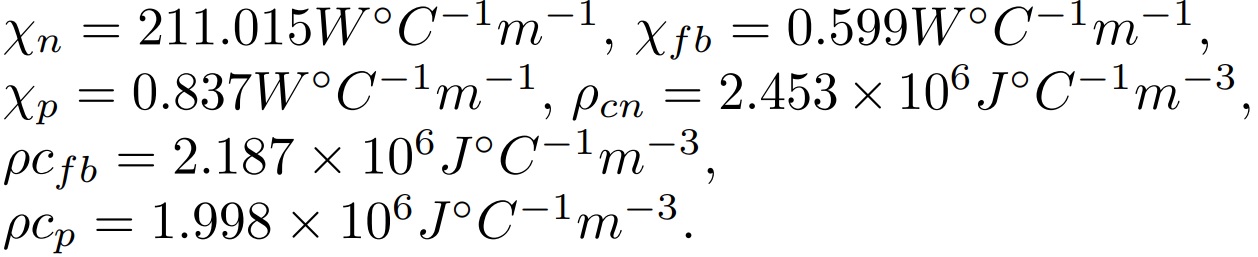 Para ellos los valores de conductividad térmica y capacidad calorífica específica son los siguientes: