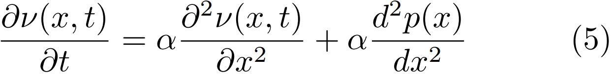 Esta conduce a dos nuevas ecuaciones, la primera para p(x) y la segunda para v(x, t).