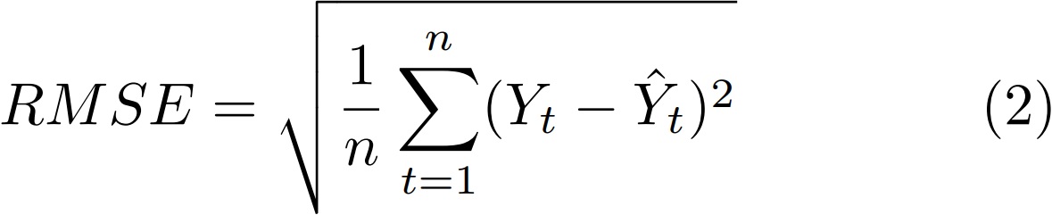 Para determinar la precisión de los ángulos de movimiento se utilizó como métrica de evaluación el error cuadrático medio [24, 25], dado por la ecuación 2: