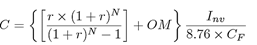 Como ejemplo se ha tomado un proceso de contratación a través de la plataforma de compras públicas de 75 kWp. El costo medio de importación de los módulos alcanzó a USD/Wp 1,11 y los inversores a USD/Wp 0,32. A esta cantidad se debe sumar los componentes nacionales de mano de obra, materiales de soporte de los módulos, cableado y el equipamiento de protección necesarios para la instalación, que en conjunto alcanza a USD/Wp 0,27 (no considera el costo del terreno ni baterías). De esta manera, el costo total de inversión para generación fotovoltaica es de USD/Wp 1,69. El costo de la energía puede ser calculado aplicando la siguiente expresión [8–11]