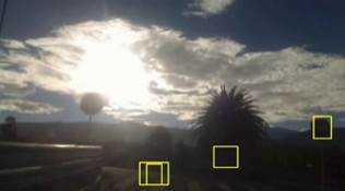 Varios ejemplos generados por el sistema se los puede observar en las Figuras 7, 8, 9 y 10. Las muestras se encuentran en diversas condiciones de iluminación durante el día, amanecer e inicio de la noche, al recorrer zonas urbanas y zonas de autopista alrededor de las ciudades de Quito y Sangolquí.