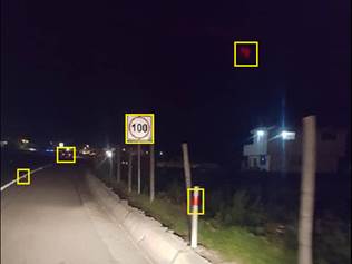 Posteriormente para verificar el funcionamiento del sistema se construyó una base de datos con vídeos en situaciones reales de conducción, en el espectro visible bajo distintas condiciones de iluminación. Esta base está constituida por cinco ejemplares en diferentes condiciones de iluminación, donde las señales han sido localizadas manualmente con fines de evaluación [31].