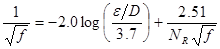La Ecuación 2, relación implícita conocida como ecuación de Colebrook, es utilizada universalmente para el cálculo del factor de fricción en flujo turbulento [3–4]. Nótese que la misma tiene un enfoque iterativo.