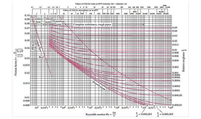 Las ecuaciones (2) y (3), y otras tales como la de Nikuradse, Karman y Prandtl, Rouse, Haaland, son obtenidas experimentalmente y su uso puede resultar engorroso. Así, el diagrama de Moody es uno de los medios más empleados para determinar el factor de fricción en flujo turbulento [2–4]. Este muestra el factor de fricción como función del número de Reynolds y la rugosidad relativa. El uso del diagrama de Moody o de las ecuaciones antes mencionadas es un medio tradicional para determinar el valor del factor de fricción al resolver problemas con cálculos manuales. No obstante, esto puede resultar ineficiente. Para la automatización de los cálculos se requiere incorporar las ecuaciones en un programa u hoja de cálculo para obtener la solución.