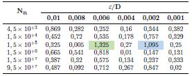 De acuerdo con la Tabla 5 y la Figura 6, el error relativo no se distribuye por igual en el rango de los valores de entrada. En el gráfico de superficie 3D generado se observa el predominio de un error relativo menor al 0,5 %, correspondiente a 24 de las 36 combinaciones de pares de entrada aplicadas a la RNA. Además, únicamente existen 2 errores relativos por encima del 1 %, concernientes a los 2 picos más prominentes de la superficie, siendo el máximo de 1,325 % para NR= 1,5E5 y E/D = 0,006. Los resultados derivados de estas 32 pruebas corroboran el correcto funcionamiento de la red y su capacidad de generalización al presentarle entradas distintas a las utilizadas en la fase de entrenamiento.