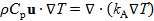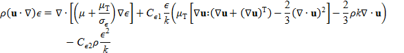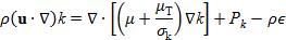 Donde u es el vector velocidad, ρ es la densidad del aire, ρ0 es la densidad del aire a la temperatura ambiente (externa), P es la presión modificada, g es la aceleración de la gravedad, µ la viscosidad del aire, µT la viscosidad turbulenta, k la energía cinética turbulenta, Cp la capacidad calorífica del aire, kA la conductividad térmica del aire y T la temperatura.