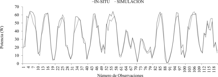 El valor del IC 90 % (intervalo de confianza de 90 %) de la Tabla 5, indica que el 90 % de los valores simulados se encuentran entre un ± 8,522 % de los valores medidos in situ, valor muy próximo al ± 8 %, con el que se han validado siete casos en estudios referenciales con SAM [34]. Cabe recalcar que en una simulación anual este valor se reduce, ajustándose mejor al modelo lineal y presentando mayor validez.