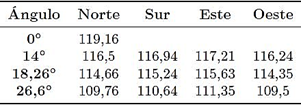 Los resultados de la Tabla 4 se deben a la posición que tiene el Sol en esta época del año (cercana al solsticio), por lo que la orientación sur supera a la orientación norte en cualquier inclinación; sin embargo, la orientación este a 14° otorgó una mayor eficiencia debido a las mañanas con alta irradiancia y tardes de alta nubosidad, por lo que fue seleccionada para el posterior análisis de influencia de suciedad.