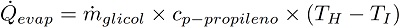 Evaporador: El calor que pierde la mezcla de glicol-agua (medio de enfriamiento) es igual al calor ganado por el refrigerante (amoníaco) que circula a través del evaporador. El flujo de calor en el evaporador se calcula con la Ec. (10).