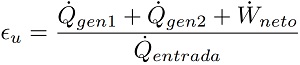 El factor de utilización de una planta de cogeneración es el cociente de las potencias de salida (energías térmica y eléctrica) con respecto al calor total que entra a la PCP, (Ec. (13)).
