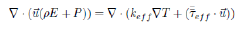 Así como: la densidad ρ, velocidad , vector velocidad , presión P, viscosidadμ, entalpía h, constante del gas R, y la temperatura T. Además, en la ecuación de la energía se tiene la conductividad efectiva