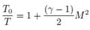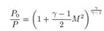 Donde, los parámetros son: presión total P0, la temperatura total T0. El número de Mach M = . La velocidad del sonido se expresa como c =