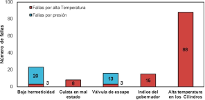 El número de fallas detectadas por temperatura en las cámaras de combustión son significativas en comparación con las reportadas por la presión de inyección.