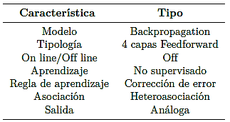 Las redes neuronales se establecen de acuerdo con las características indicadas en la Tabla 5.