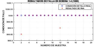 En la Figura 15 se observan los resultados de los valores obtenidos por la RNA de HC para condiciones de funcionamiento cuando la bobina 1-4 se encuentra con falla.