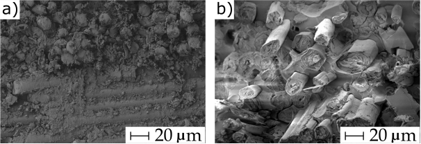 Para evaluar la interacción en la intercara entre las fibras de refuerzo y la matriz epoxi, las muestras fueron criofracturadas, y luego observadas por medio de microscopía electrónica de barrido de emisión de campo (FESEM), en un microscopio ZEISS ULTRA 55 FESEM suministrado por Oxford Instruments (Abingdon, Reino Unido) trabajando con un voltaje de aceleración de 2 kV. Para proporcionar propiedades de conducción eléctrica a los paneles tipo sándwich, estos fueron previamente recubiertos con una capa de oro/paladio utilizando un revestidor de pulverización de alto vacío EM MED20 suministrado por Leica Microsystem (Milton Keynes, Reino Unido).