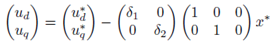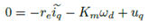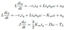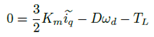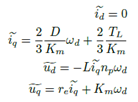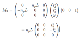 Los puntos de equilibrio nos servirán para calcular las variables de referencia deseadas i*d, i*q, u*d, u*d, w*. Para este caso w* es el valor de la velocidad deseada que se medirá en la flecha del motor. Para obtener estas referencias se toma el conjunto de las ecuaciones (1) y se igualan las derivadas a 0, por tanto, se obtienen las siguientes expresiones: