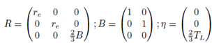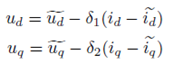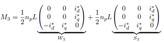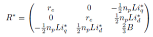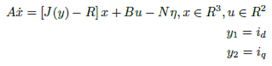 Partiendo del modelo d − q obtenido de las ecuaciones del modelo matemático original obtenido en [15], se calculan los voltajes de entrada u = [uduq] y las corrientes de entrada i = [idiq] en el eje coordenado d − q. Para el diseño del controlador se supone que se conoce la velocidad angular y el par de carga. Para comenzar con el diseño del controlador por retroalimentación de la salida pasiva, se considera el siguiente modelo en el eje coordenado d − q[3]: