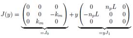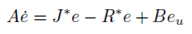 Se define el error de seguimiento e = x – x*, el error de la entrada de control eu = u−u*, y el error de la entrada de la perturbación eh = h − h* y tomando en cuenta que J(y) = J0 + yJ1, entonces: