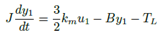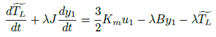 Para diseñar y desarrollar un controlador eficiente y robusto, es necesario conocer todas las variables que perturban al sistema. Debido a que el controlador por retroalimentación de la salida pasiva del error, no es robusto ante perturbaciones de par de carga constante, se diseña un observador de orden reducido para estimar el parámetro de par de carga junto con los términos de fricción no modelados [17]. Se define la corriente de cuadratura iqcomo la entrada de control, u1 = iq y se define a la velocidad angular estimada como la salida medida, y1 = w. Los valores nominales de los parámetros, J y Km se consideran conocidos. Sustituyendo las variables u1 y y1 en la ecuación mecánica dada en (1), se obtiene la siguiente expresión: