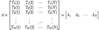 Con las ondas alineadas se construye una matriz A, como se muestra en la Ecuación 1, de dimensiones M × N, donde M es el número de latidos, en este caso 128, y N es la longitud del segmento ST-T.