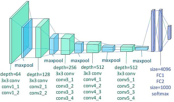 Red neuronal convolucional compuesta por 16 capas convolucionales [43], tres fully-connected, cinco Max-Pool y una SoftMax, con un aproximado de 143 millones de parámetros. La arquitectura de VGG19 se aprecia en la Figura 11.