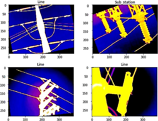 Las imágenes presentan una resolución de 384 × 288 píxeles. En la Figura 7 se aprecian algunos ejemplos de las imágenes típicas de equipos de líneas de transmisión, y en Figura 8 de subestaciones eléctricas las cuales representan las dos clases del modelo.