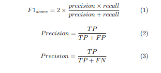 Investigaciones como [60], señalan que las métricas de exactitud y tasa de pérdida presentan un alto grado de subjetividad, por lo que se propone el uso de técnicas estadísticas para evaluar los resultados de las arquitecturas, específicamente F1-score, cuyo mecanismo de cálculo se observa en (1). Precision y Recall se obtienen de (2) y (3) respectivamente, donde TP representa a los verdaderos positivos, FP a los falsos positivos y FN a los falsos negativos. Los resultados se detallan en la Tabla 8, demostrando que la arquitectura VGG16 se ubica en primer lugar con el valor más alto de F1-score, el cual corresponde a 95.11 %.