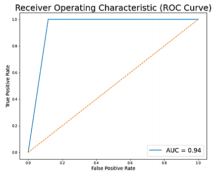 Se representó gráficamente la exactitud del modelo mediante la curva característica de operación del receptor (ROC), cuya área bajo la curva (AUC) muestra un valor del 94 %, lo cual es indicio de un alto rendimiento de la arquitectura propuesta en la clasificación de las imágenes térmicas (ver Figura 32).