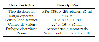 La base de datos utilizada en este trabajo corresponde a 815 imágenes térmicas, pertenecientes a una empresa de distribución eléctrica peruana, clasificadas en dos categorías, subestaciones eléctricas y líneas de transmisión. Este conjunto de datos es superior en tamaño al utilizado en [18], [20], [22], [36] y [37]. Las imágenes fueron capturadas mediante la cámara infrarroja TP8S, cuyas especificaciones se aprecian en la Tabla1.