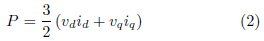En la literatura se ha demostrado que el cálculo de las potencias instantáneas en un sistema trifásico puede realizarse por medio del cómputo de las variables instantáneas de tensión y corriente expresadas en coordenadas d − q, como sigue [26]: