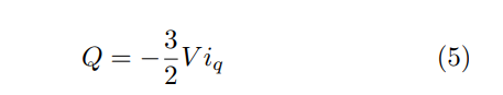 Por conveniencia analítica, en este trabajo se forzará a que el eje directo del sistema coordenado d-q esté alineado con el vector tensión de fase, de tal forma que se consiga hacer la componente vq = 0 y, además, que vd = |V| = V. Con este arreglo, las potencias instantáneas quedan definidas de la siguiente manera: