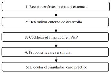 Abstract: Population confluence in internal or external areas considerably increases transmission of COVID-19, due to not respecting the social distancing established by the health system. The objective of this work was to make use of programming techniques, using the PHP language (hypertext preprocessor), for the development of an application that simulates the máximum capacity of people who can enter an internal or external area. The methodology allowed recognizing common internal and external areas, configurating to the development environment, coding, simulation proposing and executing of the simulator where a practical case and ten places were evaluated to determine its reliability. The simulator provided the maximum capacity of people who can enter an internal or external area, complying with the social distancing of 2 m. The results made it possible to know that the use of information technologies through programming techniques and the PHP language contributed to being a technological alternative for the fight against the spread of the virus.