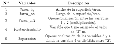 En la Tabla 1 se ha descrito el uso de las cinco variables creadas, así como la operacionalización en la que interactúa cada una de ellas para detallar las entradas y salidas en el que permite definir el comportamiento del simulador en función de las dimensiones ingresadas, tal como se visualiza en la Figura 2.