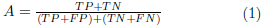 Para evaluar la confiabilidad de los clasificadores basados en ML (Machine Learning) se utiliza una matriz de confusión para saber qué tan efectivo es el sistema. De acuerdo con Aslanpour et al. [41], una matriz de confusión, también conocida como matriz de errores, es un método para resumir el rendimiento del resultado de un modelo de clasificación, mostrando el número de predicciones correctas e incorrectas. Cuatro métricas son calculadas a partir de la matriz de confusión [16],[18],[41,42, 43]: la exactitud (A: Accuracy, ver en la Ecuación 1), la precisión (P: Precision, ver en la Ecuación 2), la sensibilidad o revocación (R: Recall, ver en la Ecuación 3), y la media armónica (fβ, ver en la Ecuación 4). Adicionalmente, debido a las implementaciones AIoT Edge y Cloud del presente experimento se identifica tres clases (MC: mascarilla correcta, SM: sin mascarilla y MI: mascarilla incorrecta), también es necesario calcular la media de la precisión promedio (mAP, ver en la Ecuación 5) a partir de la precisión promedio (AP) de cada clase.