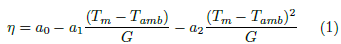 Se puede observar en la Figura 8 la comparación de eficiencias para varios colectores solares térmicos en función de la Ecuación (1), en donde: Tm corresponde a la temperatura media del fluido calotransportador, Tamb es la temperatura ambiente, a0 es el rendimiento óptico, a1 es el coeficiente de pérdidas de primer orden, a2 es el coeficiente de pérdidas de segundo orden y G es la irradiancia global. Para esta comparación, se asume una irradiancia global de 1000 W/m2 y una temperatura ambiente de 20 °C, se observa a través de la Ecuación (1) que los colectores FPC alcanzan una eficiencia elevada para un ∆T bajo, mientras que a medida que esta variable aumenta, su eficiencia disminuye drásticamente. Todo lo contrario, sucede con el resto de los colectores, en donde la eficiencia se reduce a medida que se incrementa el valor de ∆T de una manera no tan drástica. Incluso se observa que el colector PTC mantiene su eficiencia casi constante a medida que el diferencial de temperatura ∆T incrementa.
