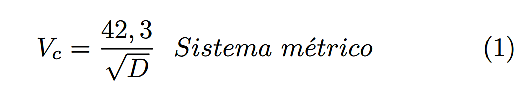 Para el cálculo de la velocidad de operación se presenta la ecuación (2) [5].