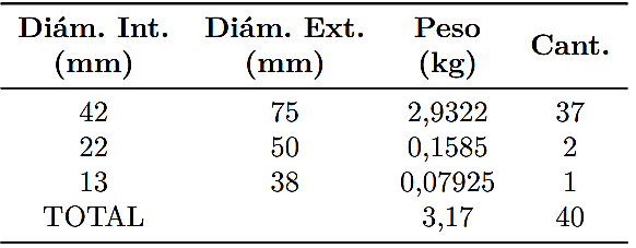 δb = densidad de las cylpebs 7,8 kg/dm3