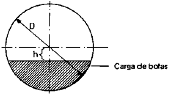 Hace referencia a que los molinos no trabajan totalmente llenos. El volumen ocupado por los elementos moledores y el material a moler referido al total del volumen del cilindro del molino son lo que se denomina la carga de los cuerpos moledores la cual se calcula con la ecuación (3)[2]