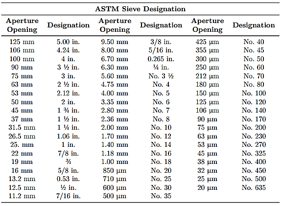 En la Tabla 1 se presenta la designación del tamiz de acuerdo con lo que se establece en la norma ASTM E-11.