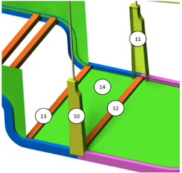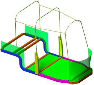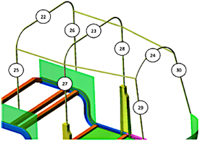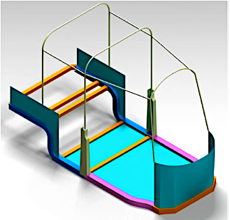 En la Figura 5 se describen los elementos intermedios en el vehículo, donde se destacan los “postes” y los componentes que soportan a los pasajeros.
