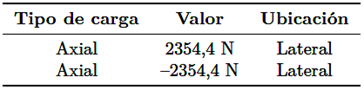 Los valores de carga fueron obtenidos, priorizando las cargas con mayor acercamiento a la realidad. Estos se detallan en la Tabla 6.