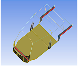 Además, se añadieron elementos adicionales con relevancia menor en la evaluación del vehículo, representados por una estructura del techo con las siguientes propiedades, como se muestra en la Figura 7.
