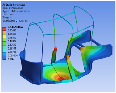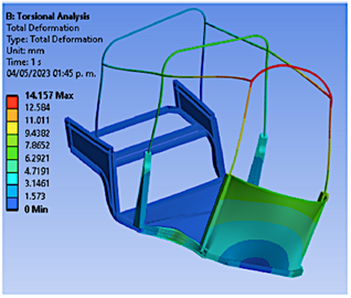 En el caso de la rigidez por flexión, la Figura 13, presenta la deformación observada en la estructura del mototaxi.